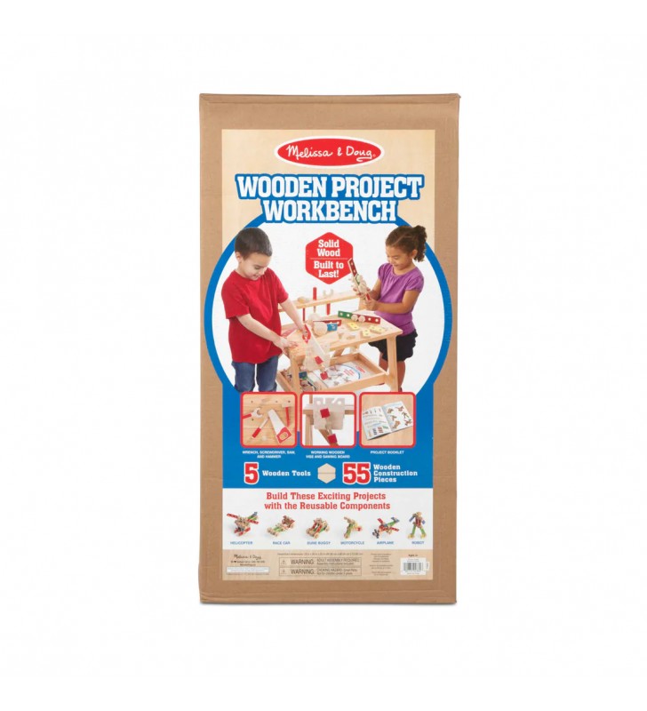 Inclui: 5 Ferramentas de madeira, Torno, Martelo, Chave de Fenda, Serra e Chave Inglesa.